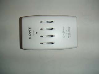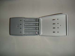 | 充電器外観です。 4個の大きい穴は,電池の確認窓です。 |