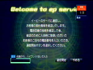 電源投入直後です。 ep service画面からのスタートです。 この画面から始まるの 何とか避けたいのですが 情報ありませんか? 唯一の欠点です。 電話線を繋いでいないので 未登録のままです。 未登録でも,BS受信には全く関係ありません。 |