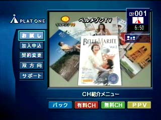 ここから放送切り替えボタンで ep>CS1>CS2>BS と切り替えます。 ちなみに右上にチャンネルが出ています。 CS1 001 |