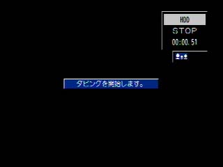 ダビング開始です。 ちなみにダビング速度は1倍速。 2時間番組は2時間かかると言うことです。 |