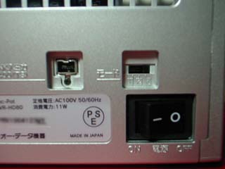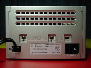 裏から見たところ。 外から見えるところにはネジは付いていません。 多分,両面テープで付いていると思われるゴム足を 取るとネジの頭が見えてくると思います。 ILINK端子が2個 モード設定スイッチ 電源スイッチです。 |