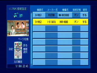 モード3(D-VHSモード)のときはこうなります。 機器名はHDDなのに「D-VHS2」となります。 HVR-HD80は問題なく動きます。 |