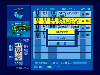 リモコンの便利機能ボタン (Windowsでいうと右クリック) でダビングを選びます。 |