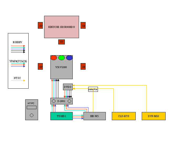 2001/10/30 現在 2001/08/25 からの変更点 Panasonic DMR-E10 お役御免?で引退。 SONY DVP-M10 復活 HTPC導入。結線は流動的に運用。現在はDVDOへの線を抜きパソコンへ刺している。