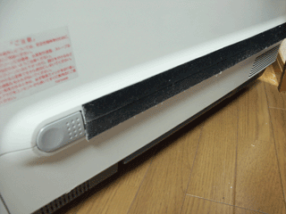 横置きで壁の方に移動する必要があります。 横置きしたとき床と当たるところにも フェルト加工がしてあります。 |