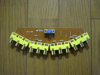 | 2002/02/09 | 昨日、日本橋(大阪は、「にっぽんばし」と呼びます)の逸品館でテレビゲーム用の切り換え器を2台購入した。 コンポジット信号用RCAピンジャック1個(黄色)、音声用RCAピンジャック2個(赤、白)計3個のRCAピンジャックを3系統に切り換えるためのセレクタである。 先日購入したXV-D721のオーディオ出力(5.1chアナログ出力)の切り替えに用いるためである。 おかたづけシアターには5.1c用のスピーカーが2組有り両方で再生させたいためである。 メーカー:オーディオテクニカ,品名:ゲームセレクタ,型番:ATG-SL03,AV接続コード付きで定価2800円である。 外観はこんな感じ。スイッチ側から見たところ。ジャック側から見たところ。裏から見たところである。 早速,ばらし中を見た。 セレクタのスイッチに何を使っているかみたかったためである。 ねじを3本はずすだけて、たやすく分解できた。 セレクタの仕組みは、セレクタスイッチを回すと,基板上の3接点4回路のスライドスイッチが切り替わる仕組みである。 基板を実装面から見たところ。 裏から見たところである。 映像と、音声のGNDは独立している。 スライドスイッチ周辺である。 これを使い、DVDオーディオを切り換えています。 色差信号の切り替え器としても役に役に立ちます。 |