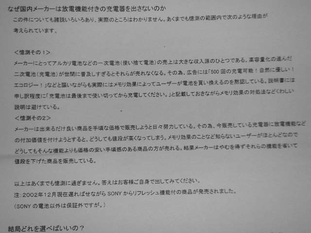 | これが共立電子の充電器コーナーに置いてあるチラシです。 こういうチラシは、お店側に技術がないと置けません。 さすが,日本橋 |
