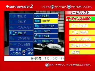 例としてHDDに録画した「プライベート・ライアン」をD-VHSにダビングしてみます。 ちなみに「プライベート・ライアン」をいれたあとのHDD残量はHDで約30分です。 メニュー>機器ナビ>HDDナビ |