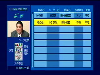 モード3(D-VHSモード)のときはこうなります。 機器名はHDDなのに「D-VHS2」となります。 HVR-HD80は問題なく動きます。 |