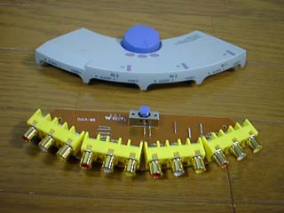 | 2002/02/09 | 昨日、日本橋(大阪は、「にっぽんばし」と呼びます)の逸品館でテレビゲーム用の切り換え器を2台購入した。 コンポジット信号用RCAピンジャック1個(黄色)、音声用RCAピンジャック2個(赤、白)計3個のRCAピンジャックを3系統に切り換えるためのセレクタである。 先日購入したXV-D721のオーディオ出力(5.1chアナログ出力)の切り替えに用いるためである。 おかたづけシアターには5.1c用のスピーカーが2組有り両方で再生させたいためである。 メーカー:オーディオテクニカ,品名:ゲームセレクタ,型番:ATG-SL03,AV接続コード付きで定価2800円である。 外観はこんな感じ。スイッチ側から見たところ。ジャック側から見たところ。裏から見たところである。 早速,ばらし中を見た。 セレクタのスイッチに何を使っているかみたかったためである。 ねじを3本はずすだけて、たやすく分解できた。 セレクタの仕組みは、セレクタスイッチを回すと,基板上の3接点4回路のスライドスイッチが切り替わる仕組みである。 基板を実装面から見たところ。 裏から見たところである。 映像と、音声のGNDは独立している。 スライドスイッチ周辺である。 これを使い、DVDオーディオを切り換えています。 色差信号の切り替え器としても役に役に立ちます。 |